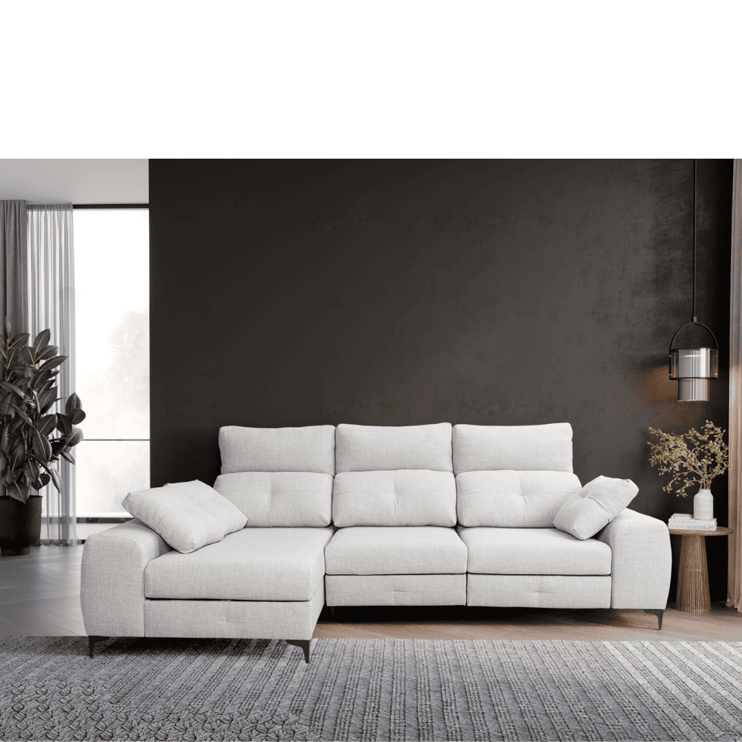 El sofá JAÉN destaca por su equilibrio perfecto entre comodidad, funcionalidad y diseño contemporáneo. Incorpora un sistema de asientos deslizantes carro-cama con espuma de alta densidad, ideal para el descanso diario. Su cabecero reclinable multiposición y el respaldo de fibra siliconada 100 % virgen garantizan una sentada envolvente. Fabricado con armazón de madera de pino y MDF, ofrece gran resistencia, opciones personalizables y fundas desenfundables, adaptándose a cualquier espacio y estilo de vida.